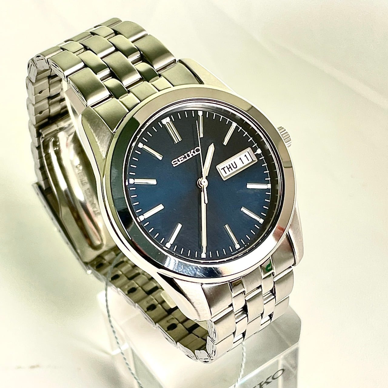 このセイコークォーツは、ビジネスシーンからカジュアルなスタイルまで幅広くマッチします。