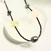 黒蝶真珠&ローズクォーツ&レモンクォーツ&ブラックスピネル ネックレス NS-1519