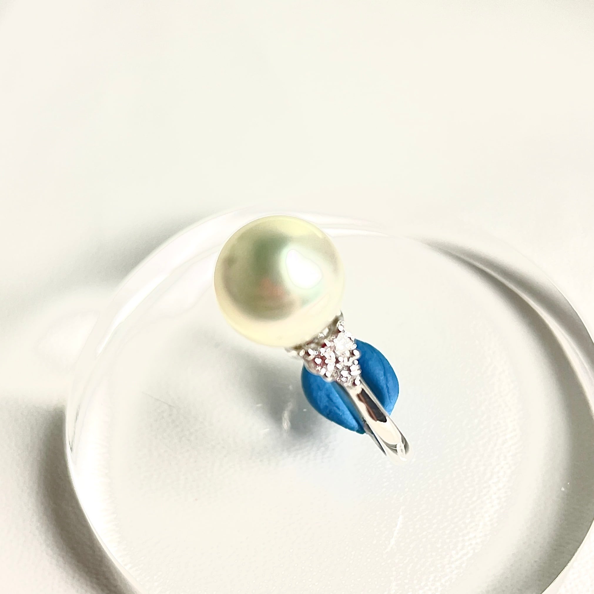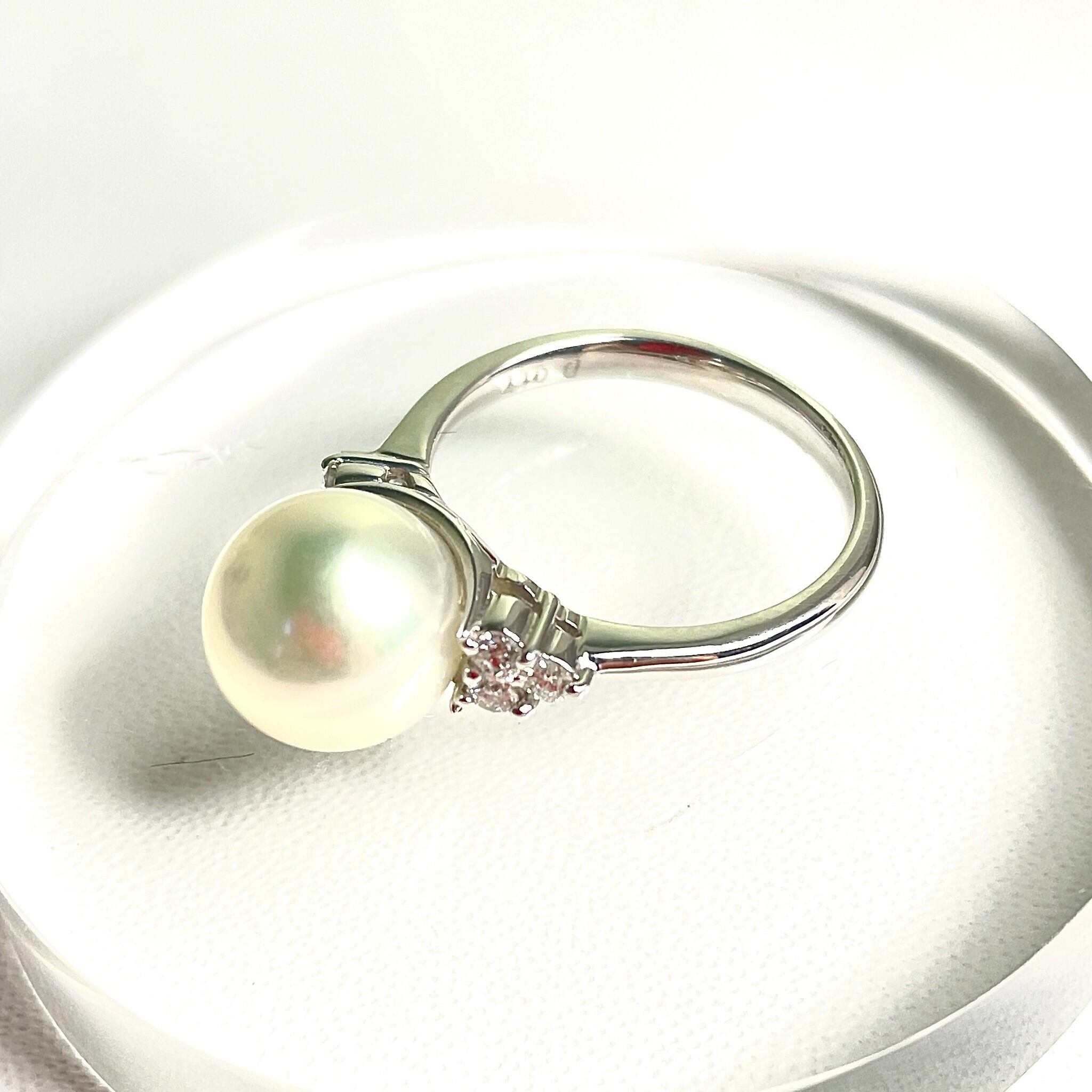 このリングは、中央にあしらった美しい9.5mmのアコヤ真珠が、指先に華やかさをプラスする洗練されたデザインです。