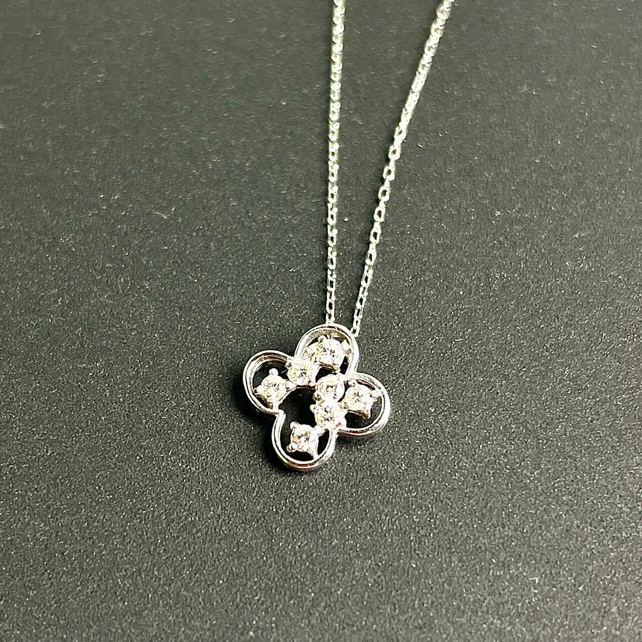 K18ホワイトゴールド クローバーデザイン ダイヤペンダント C-8706