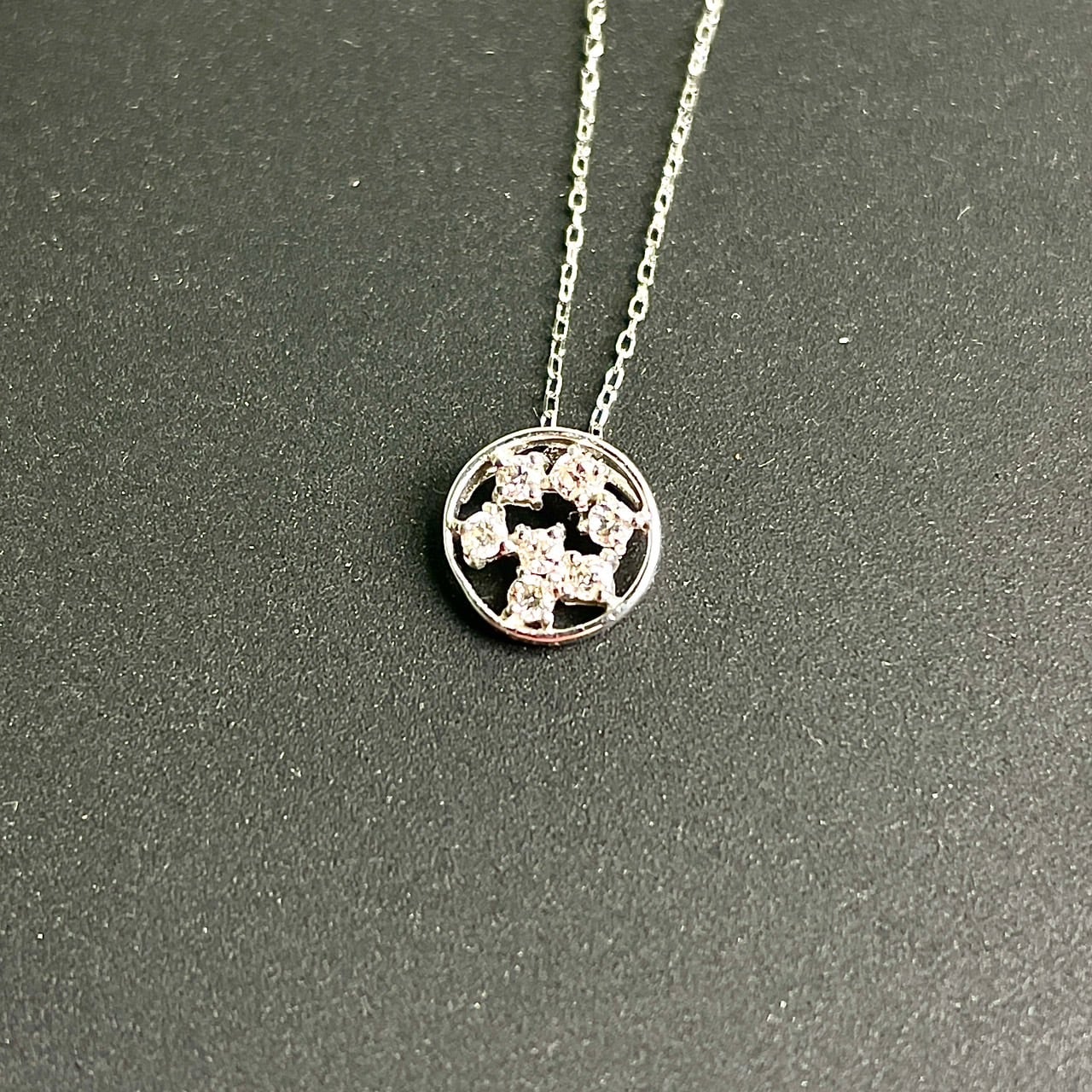 K18ホワイトゴールド ラウンドデザイン ダイヤペンダント C-8705