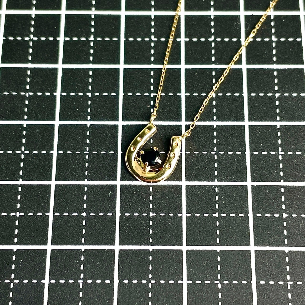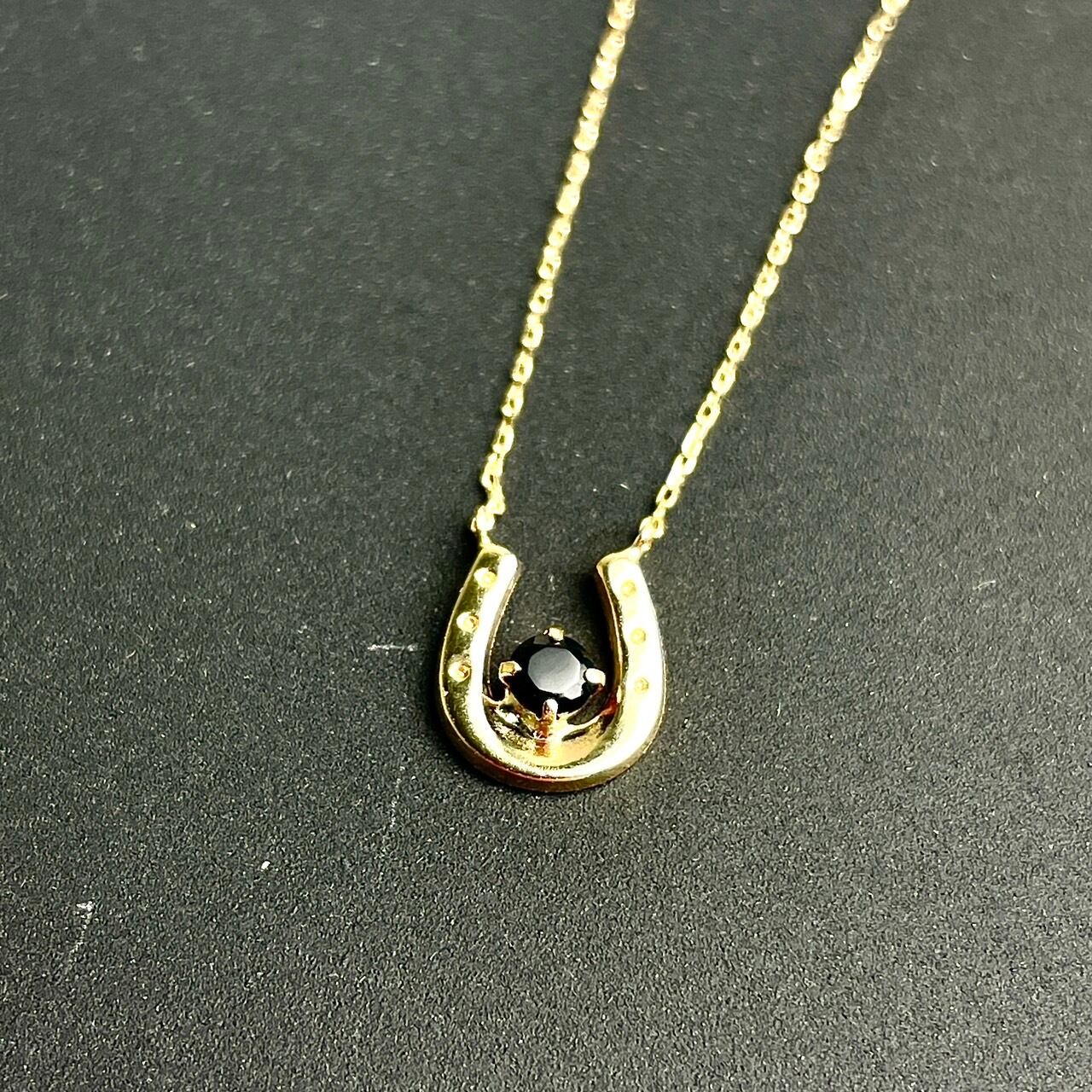 「K18ゴールド オニキス 馬蹄デザインペンダント」は、縁起の良い馬蹄がテーマのデザインです。