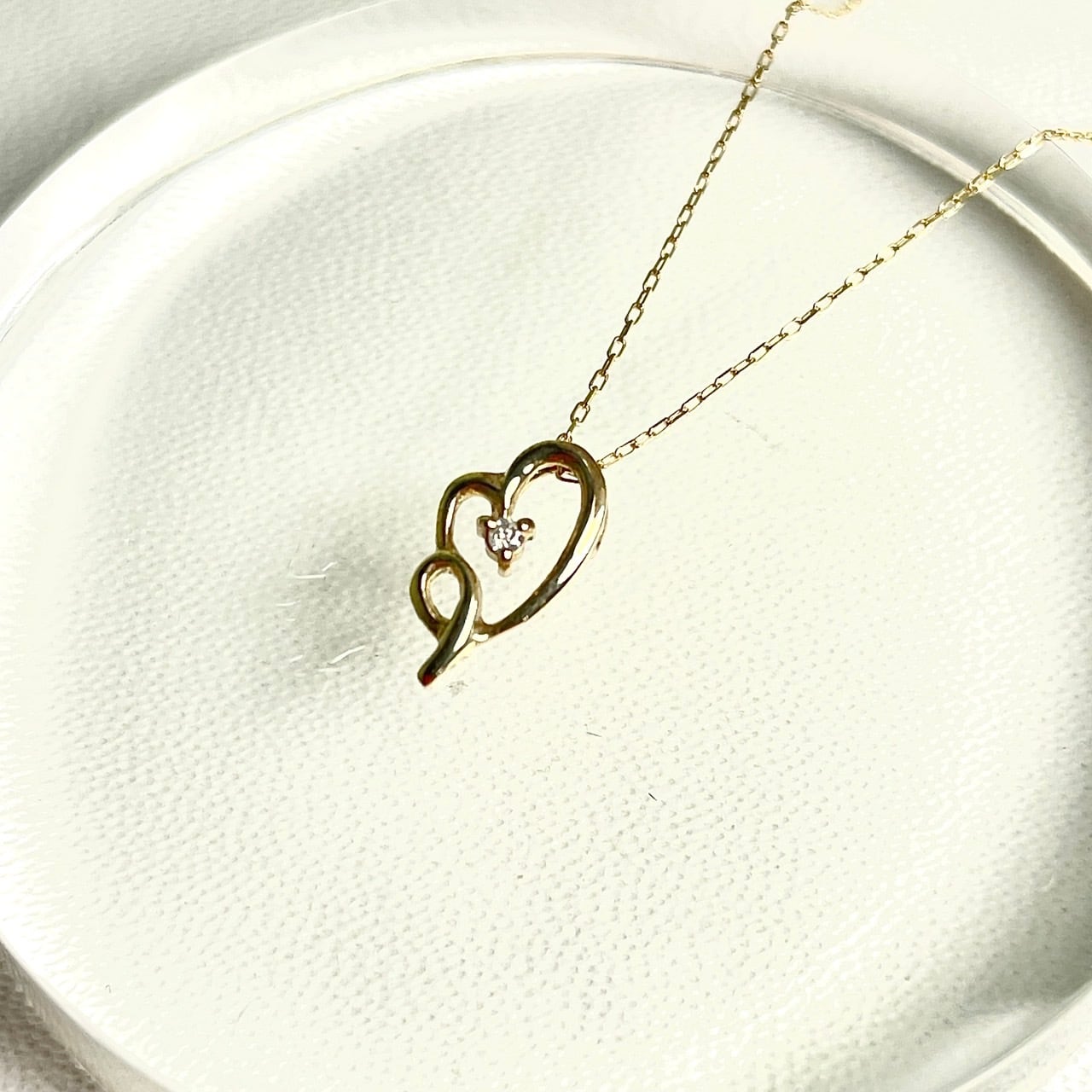 「K10イエローゴールド ハートデザインダイヤペンダント」は、ハートを象った可愛らしいフォルムが特徴です。