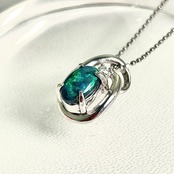 K18ホワイトゴールド製のペンダントに、神秘的なブラックオパールをあしらった美しい逸品です。