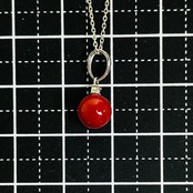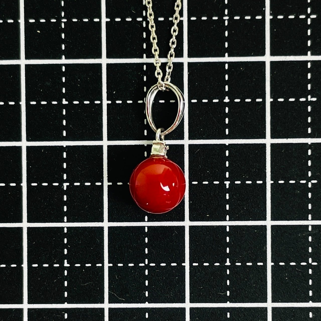 深い赤色が美しい希少な天然血赤珊瑚を使用し、チェーンにはフリーで長さ調整ができるK18ホワイトゴールド製チェーンを採用しています。