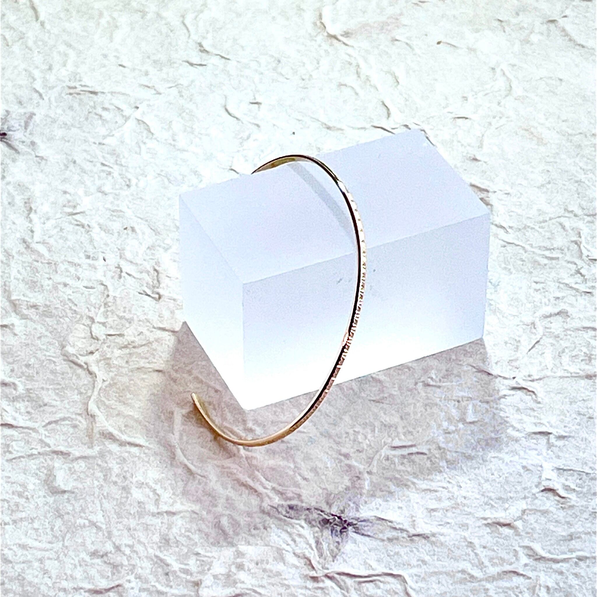 このバングルは、職人の手によって一つ一つ丁寧に作られています。日本の伝統的な技術と最新のデザインが融合した逸品です。お手元を華やかに飾ることで、日常の何気ない瞬間も特別なものに変えてくれるでしょう。