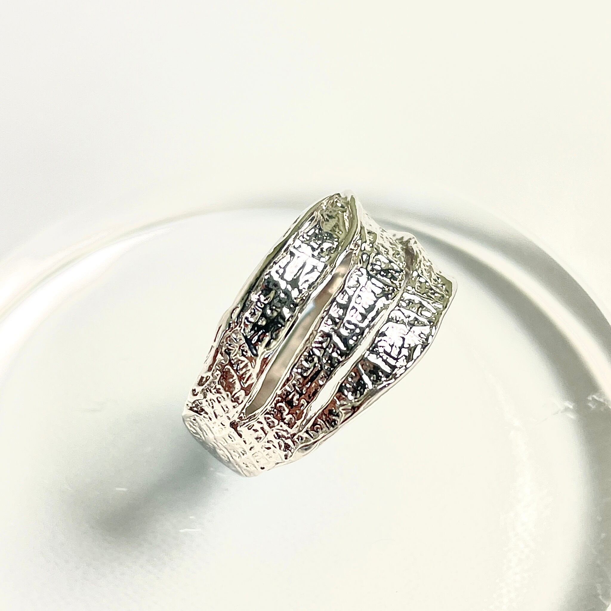 Pt900プラチナ製の幅広デザインリング 上幅11mm下幅3.5mmのボリュームのあるデザイン