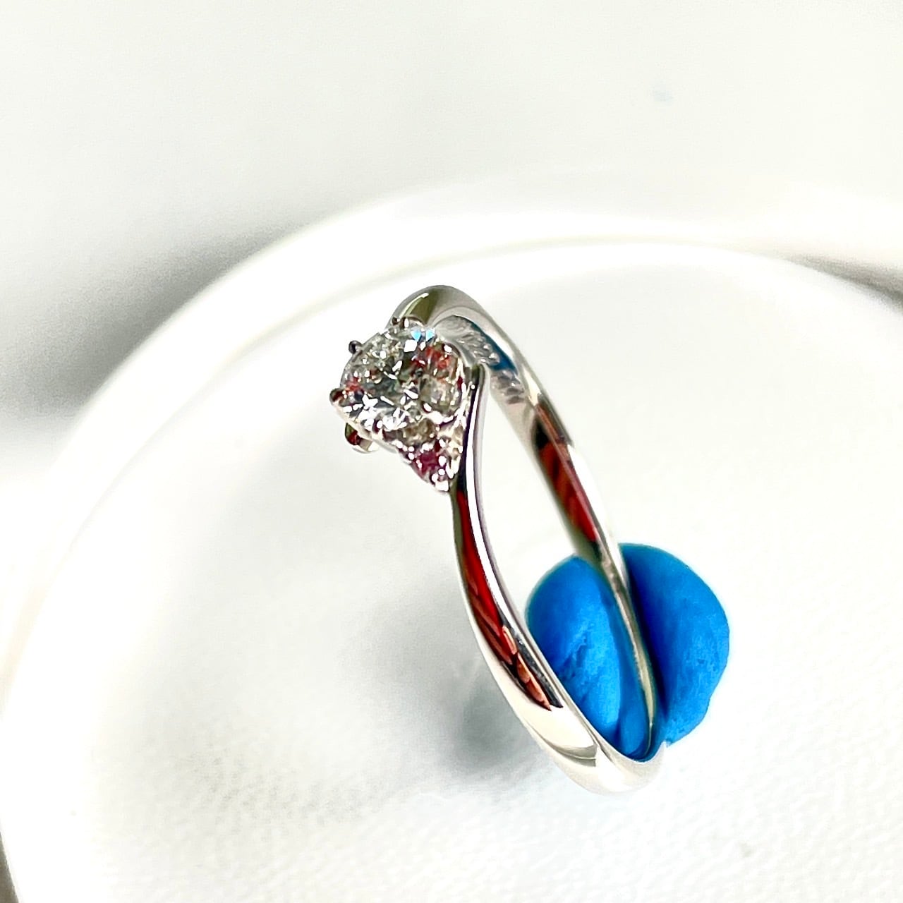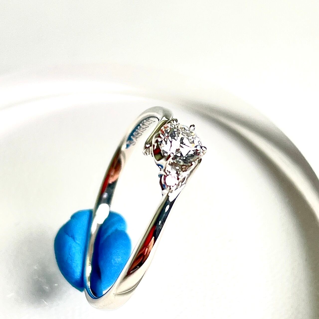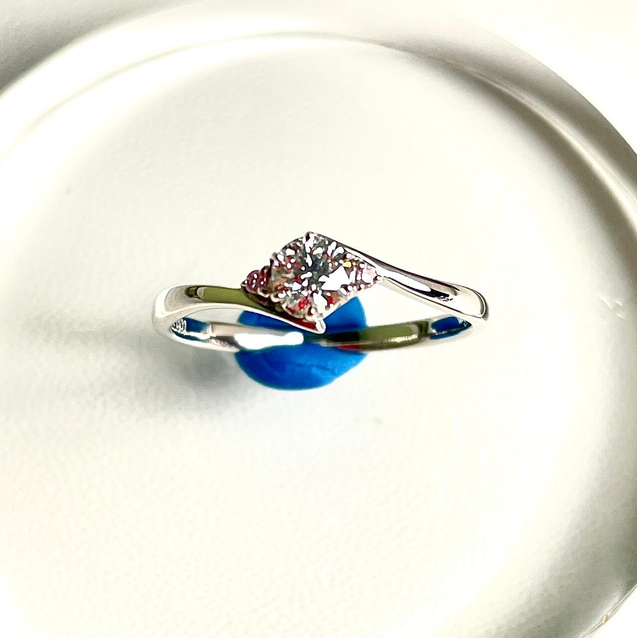 このエンゲージリングは、0.222ctの素晴らしい天然ダイヤモンドが魅力的に輝きを放ち、特別な日の意味をより一層高めます。サイドのピンクダイヤがさらに色彩を添え、愛の象徴を美しく表現しています。