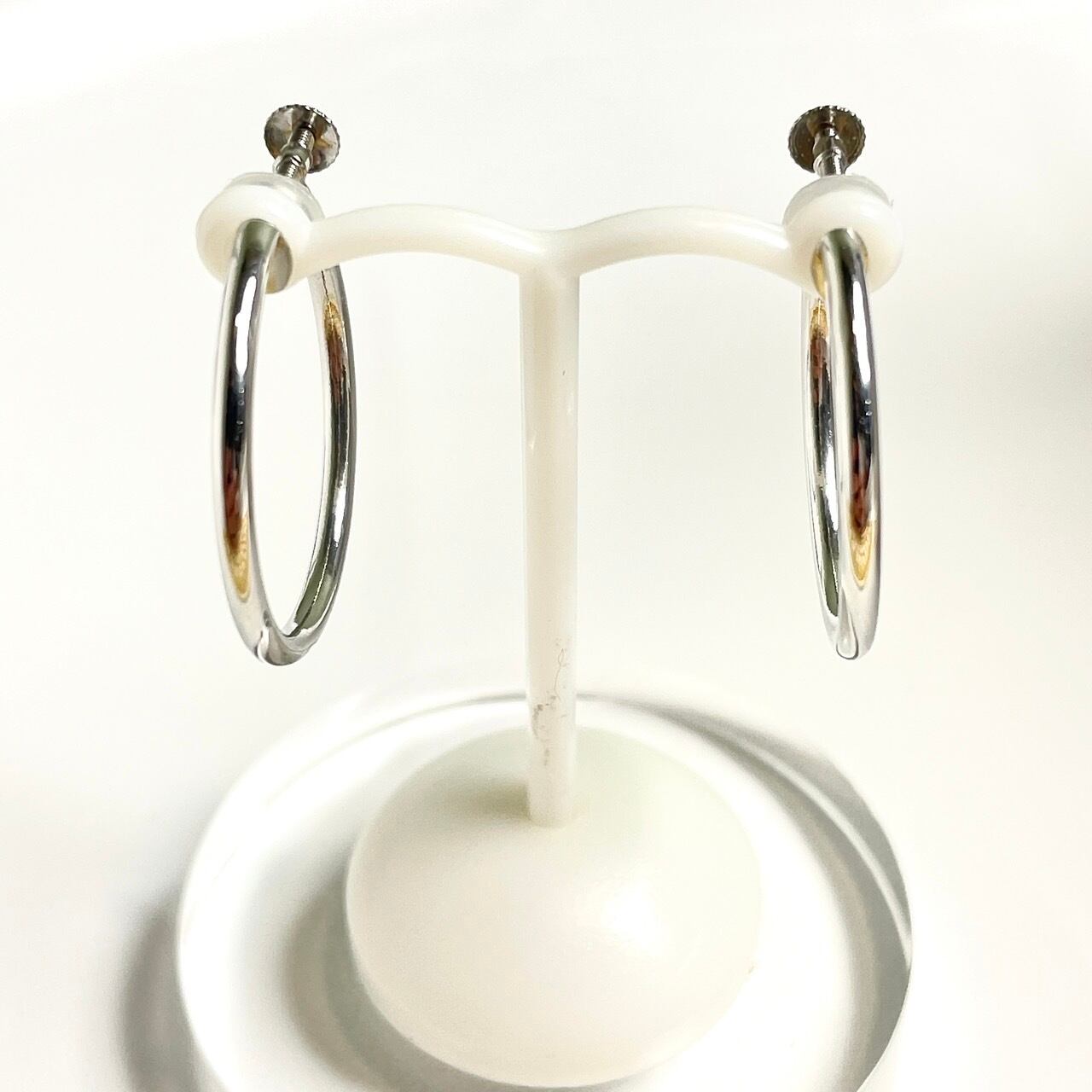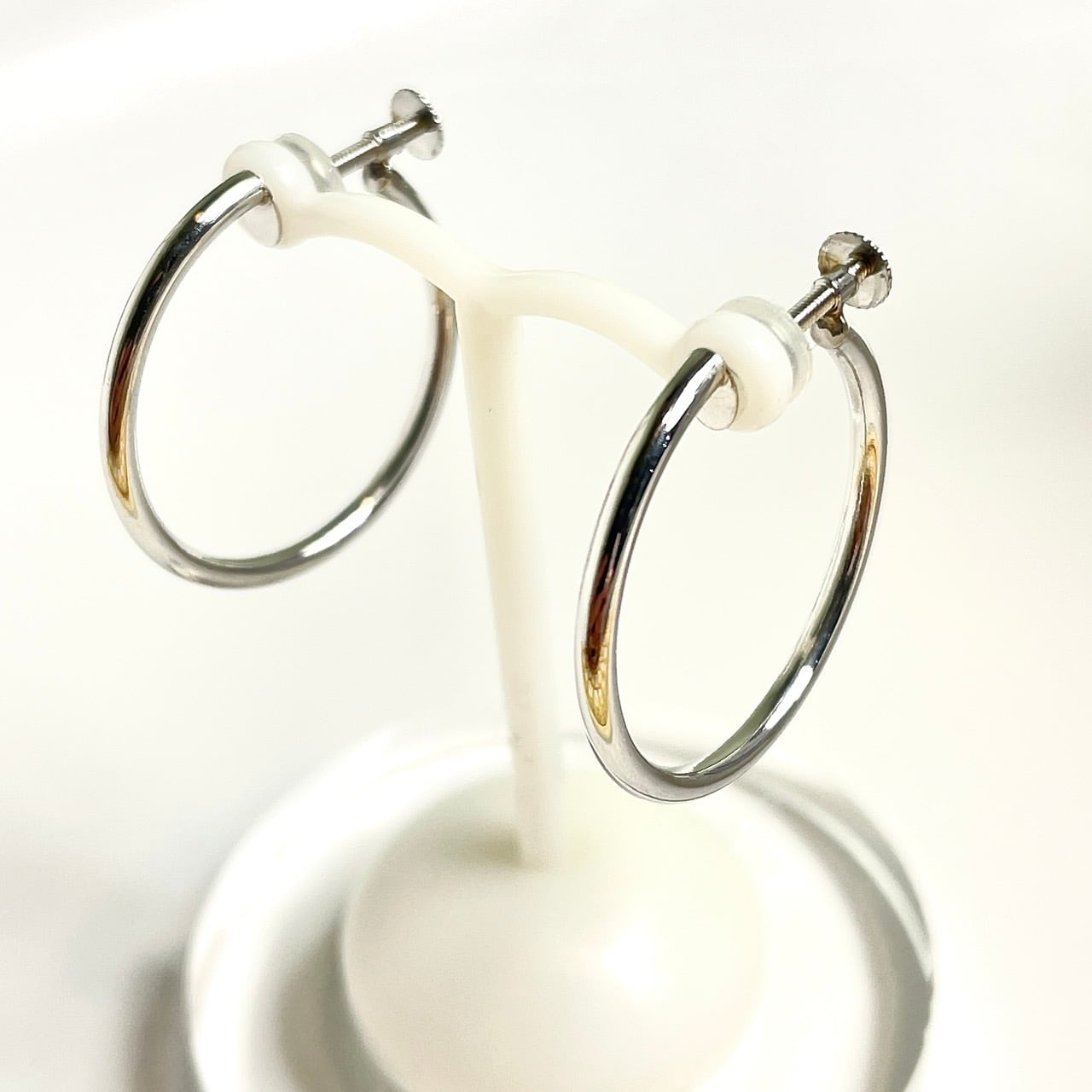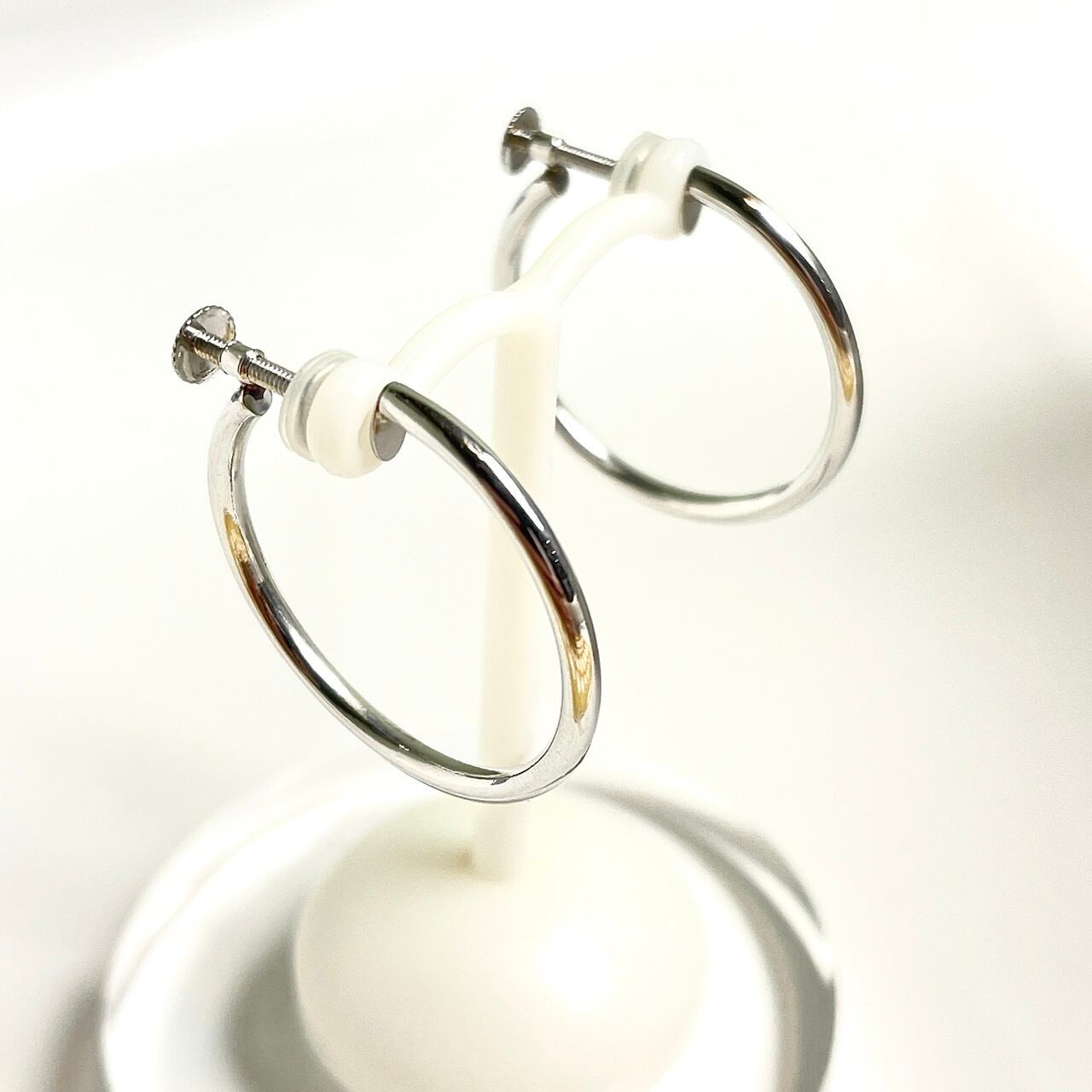 Pt900プラチナ製 ジュエリー職人により手作業で作られた人気のフープデザインの希少なイヤリング 定番のシンプルフープデザイン