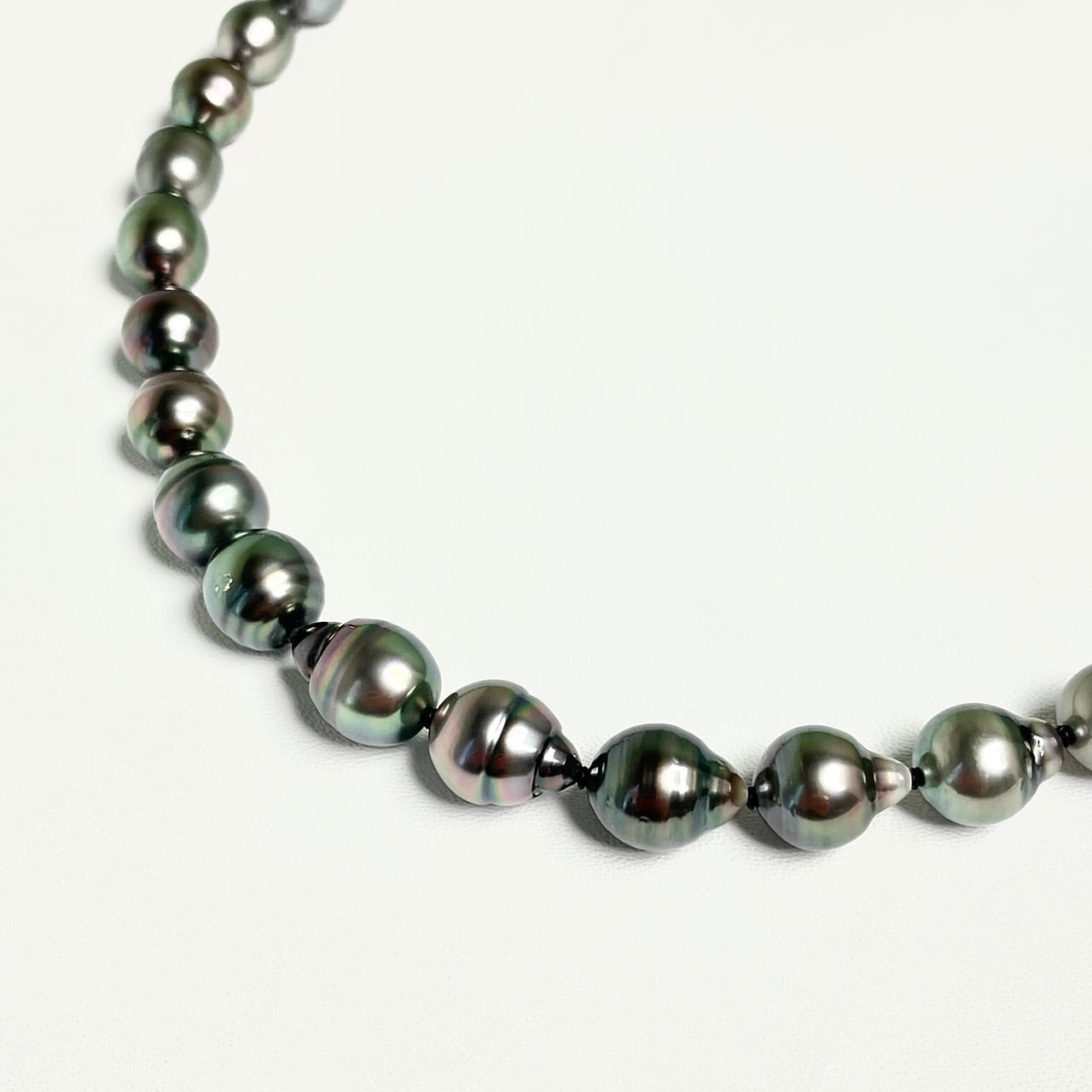 冠婚葬祭や普段使いに最適な高級感ある黒蝶真珠ネックレス 9-11mmの丁度いい大きさの珠の黒蝶真珠ネックレス 人気のピーコックグリーン系カラー