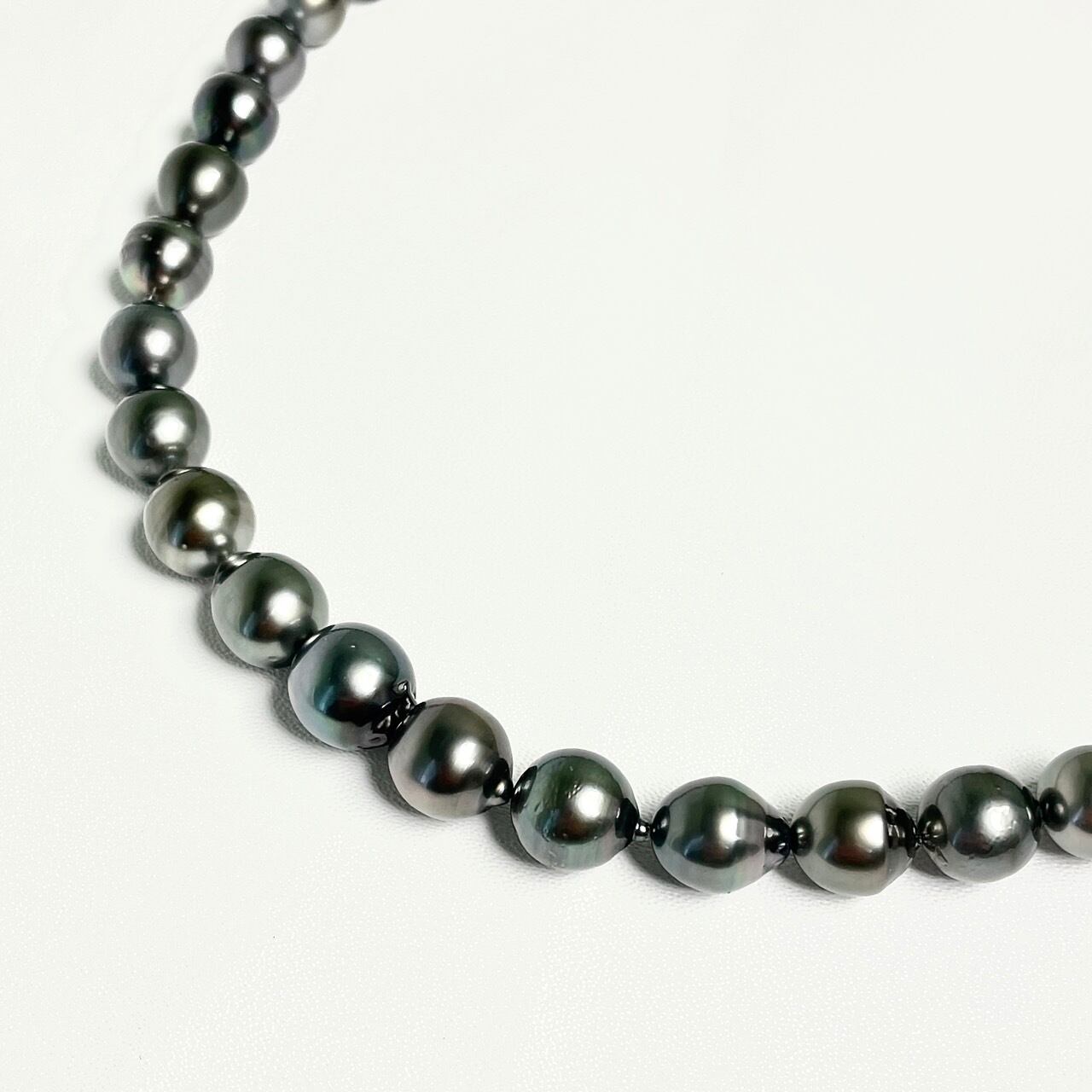 この黒蝶真珠ネックレスは、深い色合いを持つピーコックグリーンが特徴で、肌に洗練された輝きを与える美しさが際立ちます。